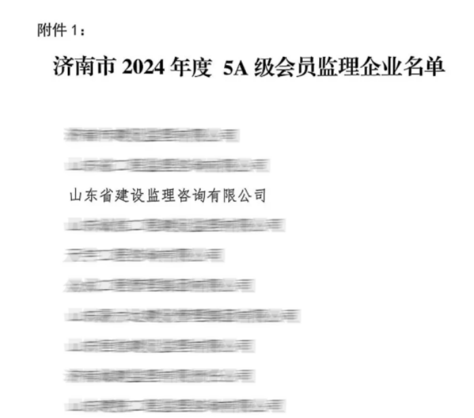 載譽(yù)前行——山東省建設(shè)監(jiān)理咨詢有限公司榮膺濟(jì)南市2024年度 5A 級(jí)會(huì)員監(jiān)理企業(yè)